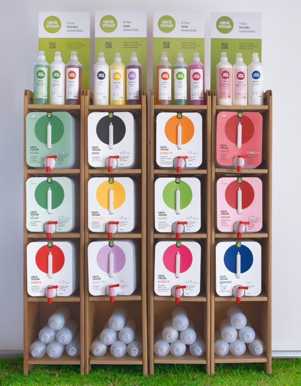 Giordani Elettrodomestici, grazie alla partnership ufficiale con Lavaverde, offre una linea di detersivi alla spina 3 volte concentrati, efficaci, convenienti e completamente vegetali. Questo ci permette di diminuire l’utilizzo di acqua, energia elettrica e del detersivo stesso, che comunque è completamente biodegradabile, di origine vegetale, antibatterico e ipoallergenico, quindi adatto anche alle pelli più sensibili come quelle di bambini e neonati. Il comodo sistema di ricarica alla spina permette inoltre di riutilizzare il flacone infinite volte, semplicemente portandolo in negozio. Inoltre, la ricerca, la sperimentazione e la produzione sono interamente made in Italy e testati in collaborazione con l’Università di Ferrara.